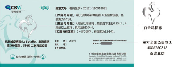 雞新城疫-禽流感(H9)二聯滅活疫苗