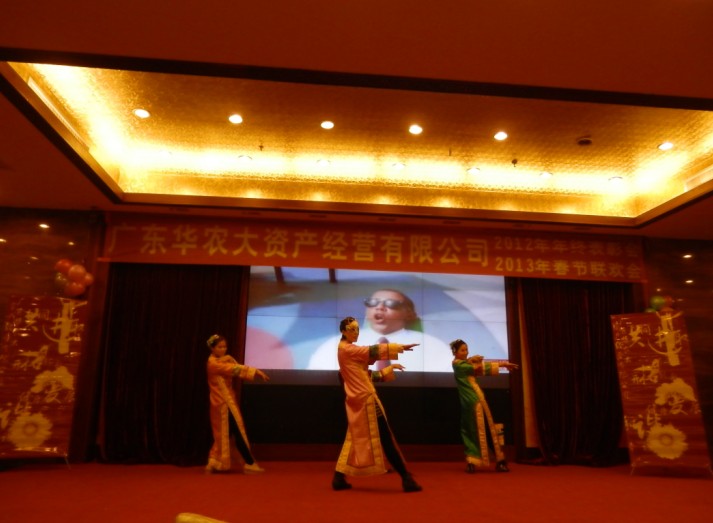 2012年1月25日下午,廣東華農(nóng)大資產(chǎn)經(jīng)營(yíng)有限公司聯(lián)歡大會(huì)在廣州源華酒店隆重舉行,我司作為屬下企業(yè)參與了本次會(huì)議。大會(huì)共分為三個(gè)環(huán)節(jié),第一個(gè)環(huán)節(jié):年度優(yōu)秀集體與個(gè)人的表彰大會(huì);第二個(gè)環(huán)節(jié):各企業(yè)節(jié)目表演;第三個(gè)環(huán)節(jié):晚宴與抽獎(jiǎng)。