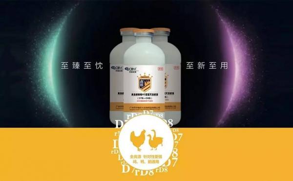 禽流感病毒H5亞型滅活疫苗(D7株+rD8株)“禽盾”適用于水禽和家禽,是針對多分支的H5亞型禽流感的二價滅活疫苗,于2017年3月獲得農(nóng)業(yè)部新獸藥注冊證書【(2017)新獸藥證字10號】。該產(chǎn)品選用D7株和rD8株作為疫苗毒株,其中D7株是華南農(nóng)業(yè)大學(xué)廖明教授團隊于2007年廣東發(fā)病鴨群分離,為H5和H9天然重組而產(chǎn)生的天然野毒株,對不同時期的Clade2.3.2均有良好的保護力,對水禽保護效果良好;rD8株為重組病毒,是以D7株為骨架,選用目前流行的H5N1亞型禽流感病毒CG1株(Clade 2.3.4.4)作為HA基因供體利用反向遺傳技術(shù)獲得,為全禽源禽流感病毒,具有高效的雞胚增殖能力,以及良好的家禽免疫良性。針對目前國內(nèi)流行的Clade 2.3.4.4和Clade 2.3.2.1分支的H5亞型禽流感病毒,產(chǎn)品的抗原性可以實現(xiàn)全覆蓋,具有良好的交叉保護作用,對雞和水禽均有良好的安全性和免疫效力。經(jīng)過多次臨床試驗證明,禽流感病毒H5亞型滅活疫苗(D7株+rD8株)可有效預(yù)防家禽感染H5亞型禽流感。