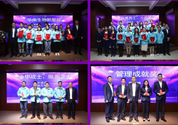 2019年,涌現(xiàn)出一批批表現(xiàn)優(yōu)秀的管理人員、基層人員與團(tuán)隊(duì)進(jìn)行了表彰頒獎(jiǎng)。現(xiàn)場(chǎng)頒發(fā)的獎(jiǎng)項(xiàng)依次是:華南生物新星獎(jiǎng)、優(yōu)秀員工獎(jiǎng)、優(yōu)秀干部獎(jiǎng)、服務(wù)衛(wèi)士獎(jiǎng)、金甲衛(wèi)士獎(jiǎng)、管理成就獎(jiǎng)、管理卓越獎(jiǎng)、優(yōu)秀專家獎(jiǎng)、最佳支持團(tuán)隊(duì)獎(jiǎng)、攻堅(jiān)克難團(tuán)隊(duì)獎(jiǎng)、最佳保質(zhì)保量團(tuán)隊(duì)獎(jiǎng)、王者之師團(tuán)隊(duì)獎(jiǎng)。