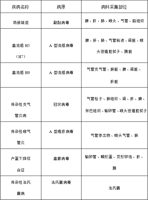對于不同的疾病應采集不同的部位,不可盲目采集。列表中病料采集部位在前的表示發病時含毒量較高排位較前,采集病料應注意。