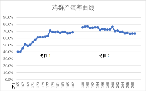 開產(chǎn)日齡雞群無法爬升上理想的產(chǎn)蛋高峰,即使可以達到產(chǎn)蛋高峰也無法維持,產(chǎn)蛋率在1-2周內(nèi)很快下降。