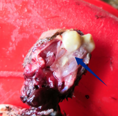 臉部皮下水腫,鼻腔粘膜充血腫脹、鼻腔內有黃白色干咯樣物;喉頭氣管有粘液,喉頭氣管上部出血。