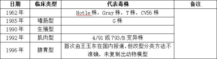 雞傳染性支氣管炎是一種廣泛存在的對家禽業造成巨大經濟影響的家禽疾病。不斷出現的新的IBV基因型及不同基因型之間缺少交叉保護已經成為防控IBV的重要挑戰。IBV致病型(臨床型)與IBV毒株血清型/基因型之間并無必然的聯系,不同血清型或基因型毒株可能屬于相同致病型。同時,屬于同一血清型或基因型的IBV毒株可能屬于不同致病型?,F就雞傳染性支氣管炎病毒臨床分型和代表毒株說明如下: