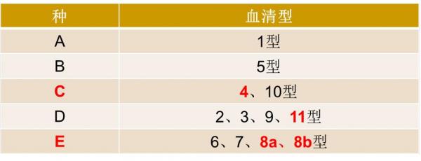 根據(jù)限制性內(nèi)切酶消化不同,FAdV-Ⅰ分為A、B、C、D、E 5個(gè)種。根據(jù)血清交叉中和試驗(yàn),可分為12個(gè)血清型。A對應(yīng)的血清1型,B對應(yīng)的血清5型,等等。血清型8b和11型之間有一定的交叉保護(hù)性,但大部分血清型之間幾乎無交叉保護(hù)性。FAdV-Ⅰ主要在禽類呼吸道和消化道上皮細(xì)胞內(nèi)復(fù)制,形成包涵體。C4型引起禽HPS;各血清型都能引起IBH,但主要是血清8a、8b和11型;A1、8a和8b型能引起禽肌胃糜爛。